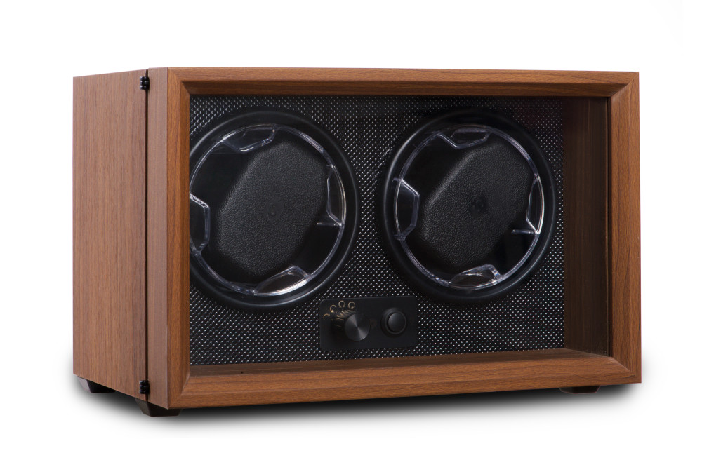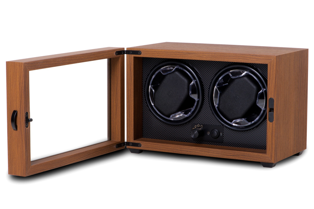 Barna színű, fából készült óraforgató 2 órához.