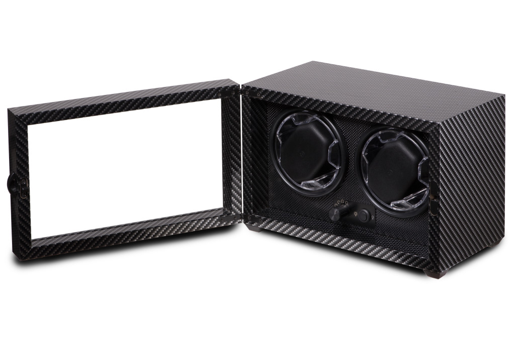 Karbon színű színű, fából készült óraforgató 2 órához.
