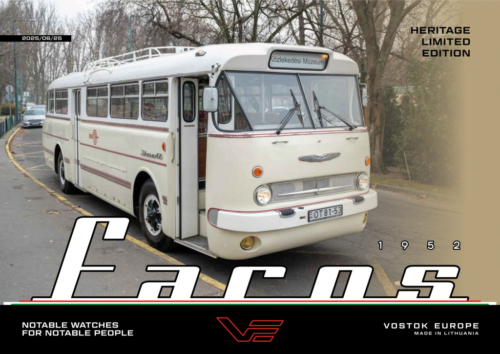 Csak Magyarországon elérhető Vostok Europe, 100 darabos limitált kiadás érkezik. Az országban szinte nincs olyan aki nem ismerné vagy ne utazott volna Ikarus buszon. A magyar ipartörténet kulcsfontosságú gyártója ma már legendává emelkedett, Ikarus találkozókkal és baráti körökkel. A legújabb Vostok Europe limitált kiadás nekik szól, megidézve az egyik legendás Ikarus buszt, a “Faros-t”.